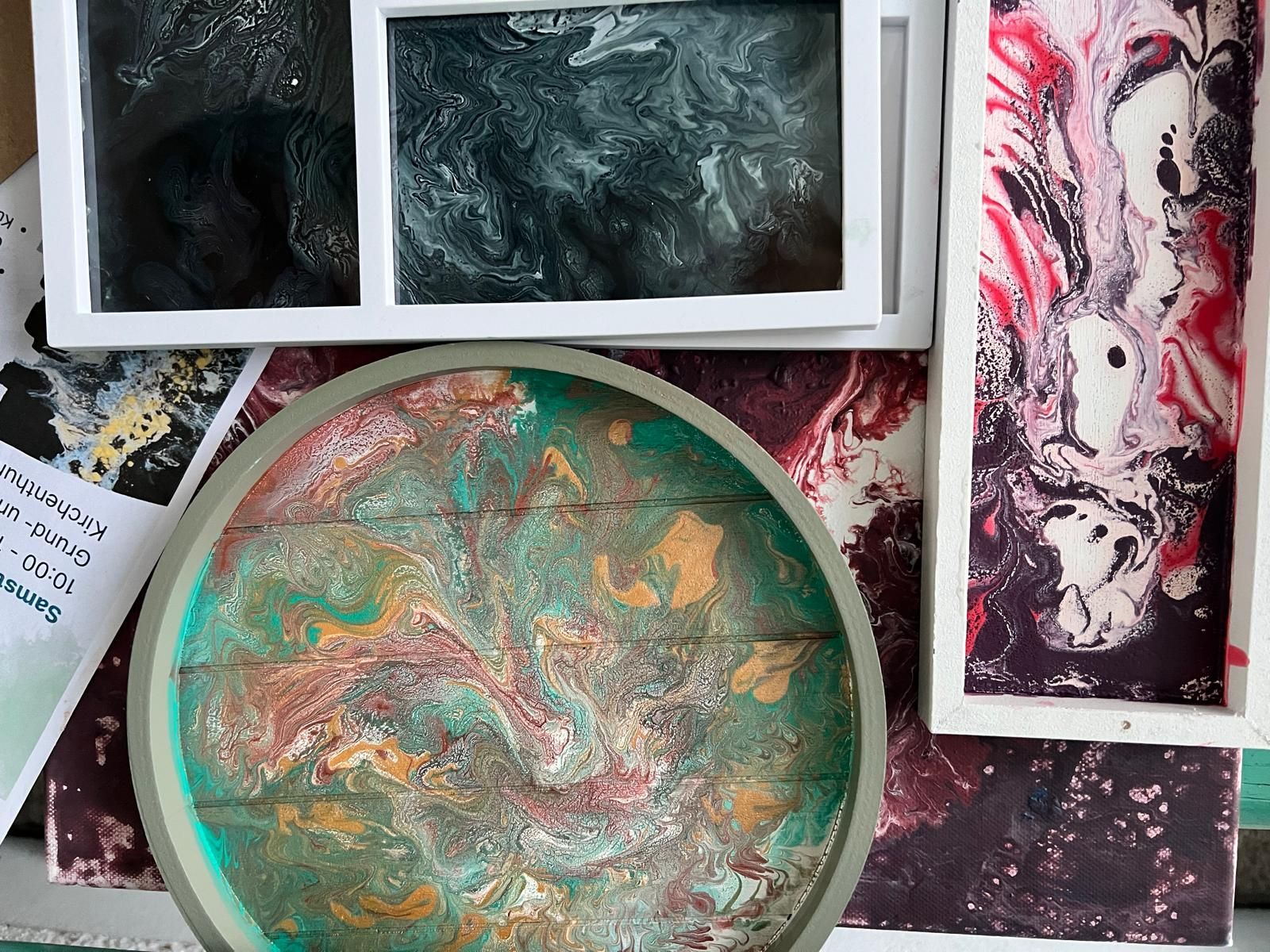 Junge Damen und Herren, heute steht Farbstyling auf dem Programm! "Fluid Art" oder "Pouring Painting" sind moderne und einfache Maltechniken. Zunächst mischen wir fließfähige Acrylfarben mit verschiedenen Methoden und Hilfsmitteln wie Haaröl oder Flüssigkleber. Anschließend gießen wir die Farben direkt auf den Malgrund und kreieren so einzigartige Kunstwerke! Mit einem Heißluftföhn kann die Pouring-Technik verfeinert werden. Die Kunstwerke müssen anschließend mindestens 24 Stunden trocknen und werden bei einem gemeinsamen Termin übergeben. Abholung der vollständig getrockneten Kunstwerke am Sonntag, 08.03.2026 um 18:30 Uhr